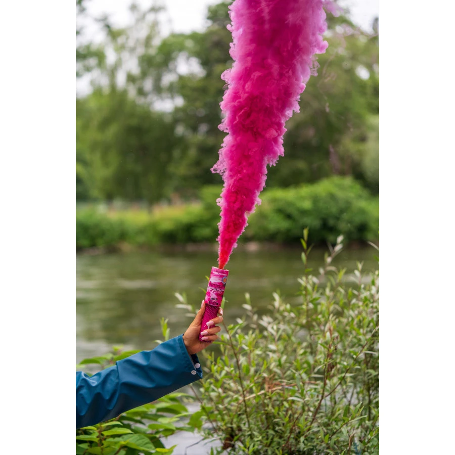 Nature de l’effet : émission de fumée de couleur rose.