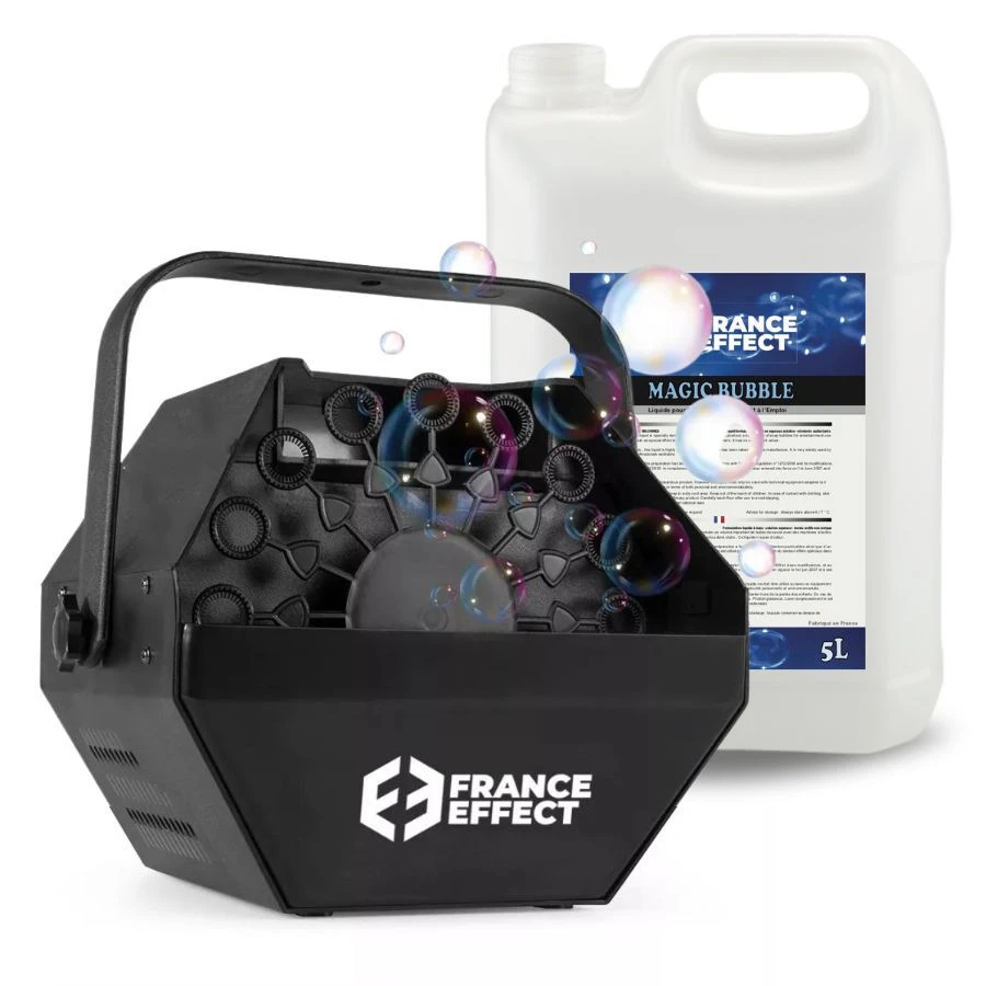 Cette machine à bulles est également livré avec un bidon de 5 litres de liquide à bulles Magic Bubble, un liquide biodégradable performant, fabriqué en France.